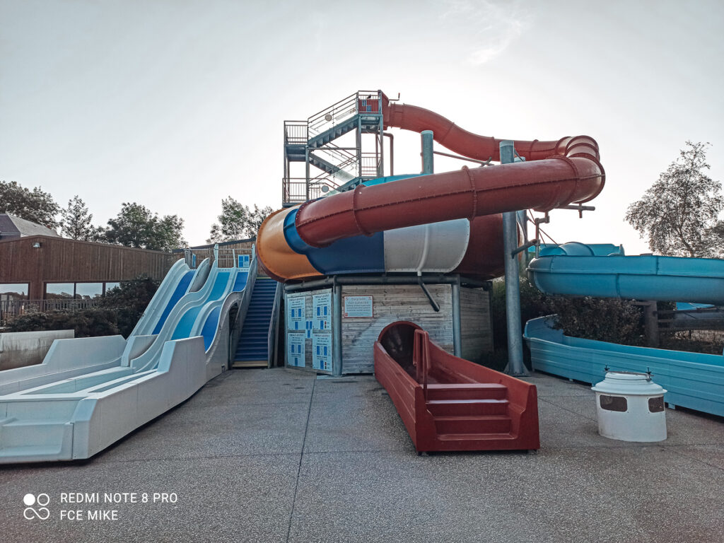 The waterslide area has 3 types of slides. A 3-lane fast, racing-style slide, a blue toboggan and a big red space bowl. The space bowl is pretty aggressive and has a minimum age limit of 16. If you watch the vlog from our stay, the slide footage is in real-time, and you do go that fast!