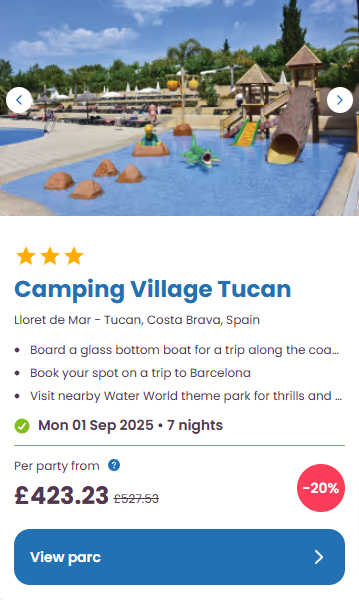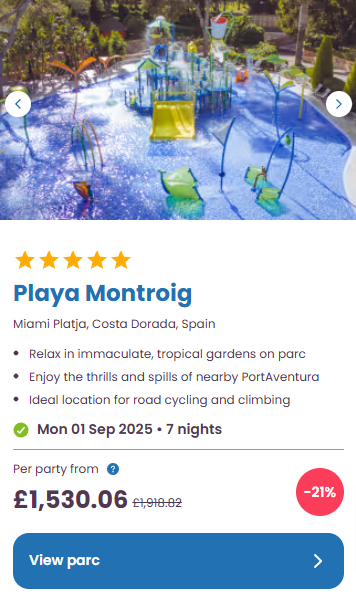 Another Eurocamp that stands out to us is Playa Montroig, Salou, Spain. This campsite is a lively resort with multiple bars, restaurants and even nightclubs on site.