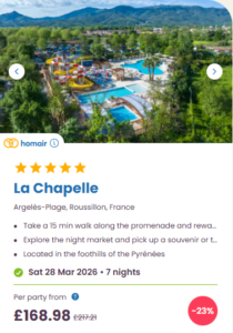 This is one of the cheapest Easter holiday deals on my list and a great option. La Chapelle is in the South of France, meaning it’ll likely have better weather than the previous ones I have written about and it’s a great base for exploring the town and beach right on your doorstep as well as further afield towns and cities.