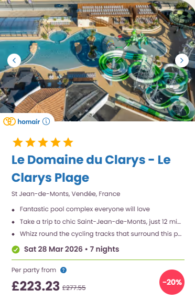 This site is pretty basic, but at these prices, can you really complain? If you are looking for a holiday in a nice French beach town but don’t want to pay above the odds, then this could be it. Plus, it’s away from the Northern Coast line so should generally have better weather than the UK (not guaranteed though)